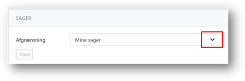 Som standard afgrænses oversigten ”Sager” til at vise ”Mine sager”. Du kan midlertidigt skifte afgrænsningen af sager der vises, ved at klikke på pilen, i rullemenuen ”Afgrænsning”.