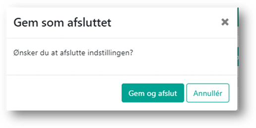 Vælger du ”Gem og afslut” vil indstillingen blive afsluttet.