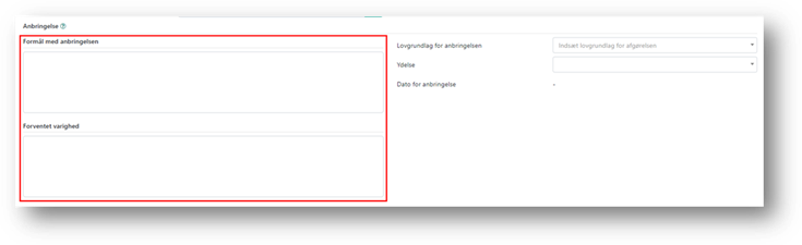 Du skal endvidere beskrive ’Formål med anbringelsen’ og ’Forventet varighed’.