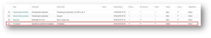 Når du klikker på Dan rapport, dannes en handleplansrapport med de valgte indsatser og mål, der lægges på aktiviteten Handleplan – Specificeret udskrift af handleplan, som bliver oprettet automatisk på sagen.