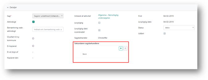 Du kan tilføje en sekundær sagsbehandler på aktiviteten fra