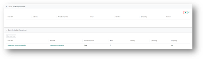 Du opretter en ny frist ved at klikke på under fanen Lokale