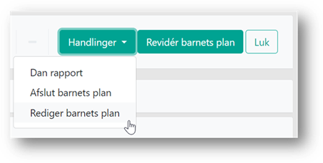 Hvis du ved en fejl har aktiveret en barnets plan/ungeplan, og har brug for at redigere i mål eller andre informationer i planen, er det muligt at genåbne planen og redigere den. Du genåbner planen ved at vælge ”Redigér barnets plan”/”Rediger ungeplan” under ”Handlinger” øverst i planen.