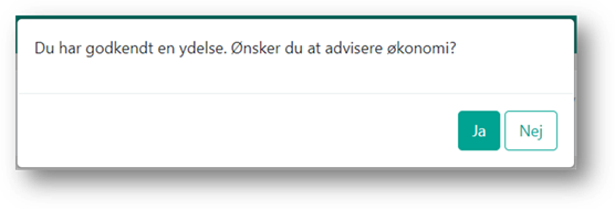 Når du godkender ydelsen, vil du blive bedt om at tage stilling til, om du ønsker at advisere en økonomimedarbejder om ydelsen.