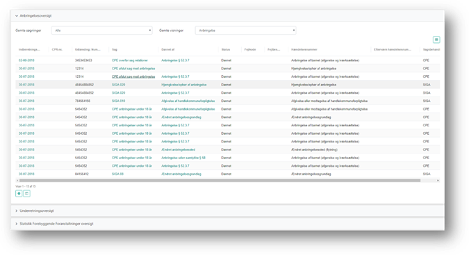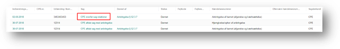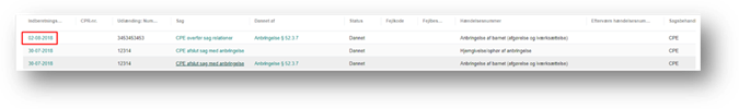 Du kan også åbne sagen, som indberetningen vedrører, ved at klikke på linket under kolonnen Sag.