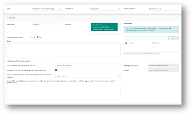 ’Inddragelse af barnet/den unge’ har en række specialfelter, som du skal udfylde inden udførelsen af aktiviteten.