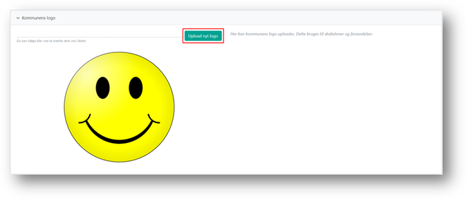 Du kan skifte kommunelogo, der bruges i dokumenter og forsendelser fra fanen Kommunens logo på siden Kommunal administration.