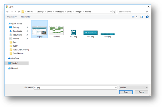 DUBU åbner browserens stifinder funktion, hvor du kan vælge den ønskede billedfil fra din computer.