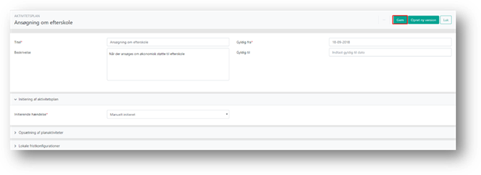 Du gemmer aktivitetsplanen ved at klikke på gem-knappen i topmenuen.