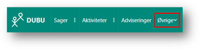 Denne menu bliver refereret til som ’Sager’ i denne vejledning. Uanset hvor du er i DUBU vil det være muligt at åbne menuen.