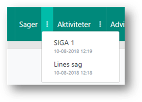 Ved klik på menuen ’Aktiviteter’ åbnes ’Aktivitetsoversigten’, hvor der er en liste over aktiviteter på tværs af sager. For at lære mere om hvad du kan på ’Aktivitetsoversigten’, gå til afsnittet Aktivitetsoversigten i Navigationsbjælken.