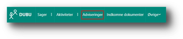 Menuen ’Adviseringer’ findes i navigationsbjælken ved siden af menuen ’Aktiviteter’.