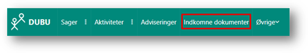 Menuen ’Indkomne dokumenter’ findes i navigationsbjælken ved siden af menuen ’Adviseringer’.