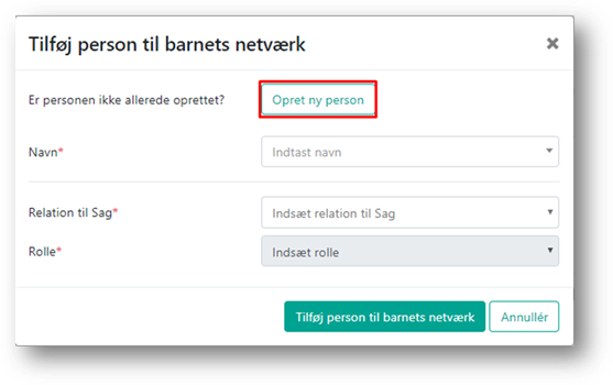 Under Barnets netværk og søskendesager, klikkes på , herefter vælges at oprette en ny