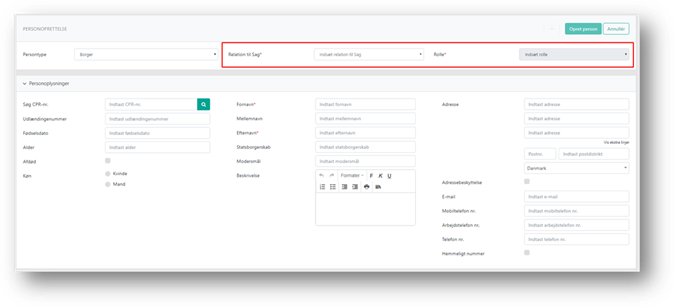 På detaljesiden for oprettelse af ny person, vælges Primær person, under Relation til sag.