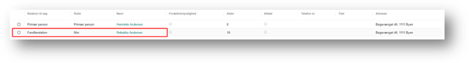 Når du har ændret den primære person på sagen til barnet, bliver moren i barnets netværk med Relationen Familierelation og Rollen Mor.