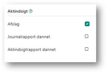 Hvis feltet Afslag er markeret, vil det ikke være nødvendigt at danne journalrapport og aktindsigtsrapport.