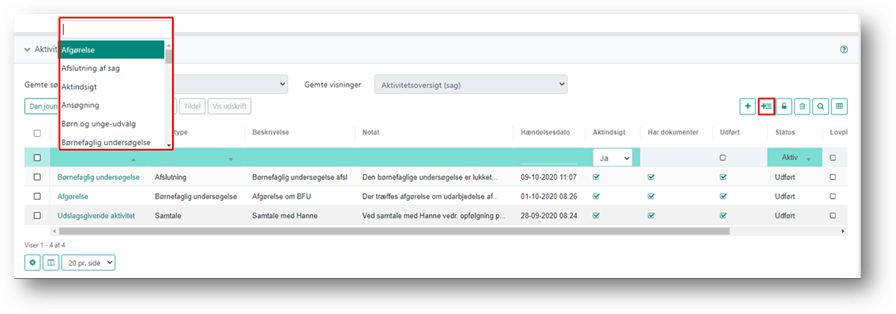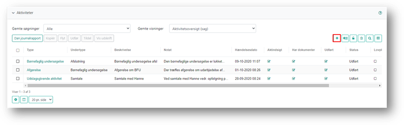 sagen. Det gør du ved at klikke på , derved oprettes en aktivitet på listen,