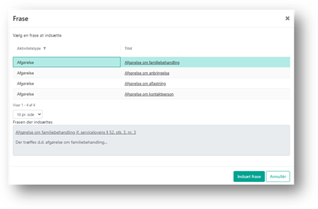 Hvis der er oprettet fraser i din kommune, kan du anvende