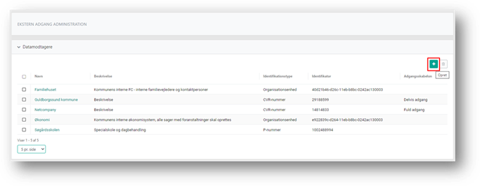 Beskrivelse - Du kan udfylde en beskrivelse af datamodtageren. Beskrivelsen vil kunne fremsøges af sagsbehandleren ved tildeling af adgang for en datamodtager og kan hjælpe med at vælge den rette datamodtager.