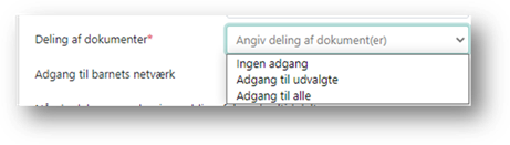 I dette felt, angiver du hvilke dokumenter, der skal deles med datamodtageren. Du kan vælge mellem Ingen adgang, Adgang til udvalgte eller Adgang til alle.