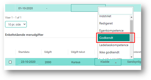 Når du tilføjer en enkeltstående merudgift til de løbende udgifter, og godkender de løbende merudgifter, vil den enkeltstående merudgift også få status godkendt.