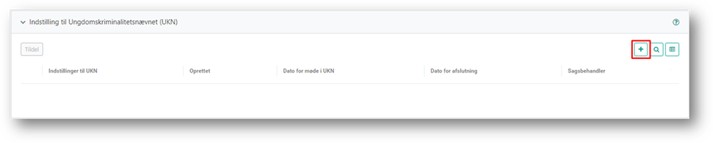 For at oprette en ny indstilling til UKN skal du starte med at vise fanen ’Indstilling til UKN’, da denne kun findes på sagen, når der er en indstilling til UKN på sagen.