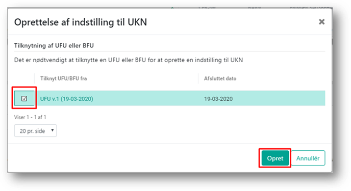 Når du har valgt den ønskede undersøgelse med flueben, klikkes på ”Opret” for at oprette og åbne den nye indstilling.