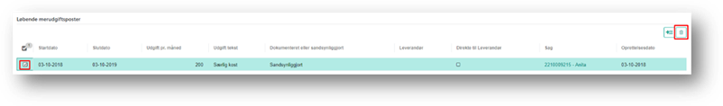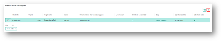 Du kan slette en merudgiftsydelse ved at sætte et flueben,
