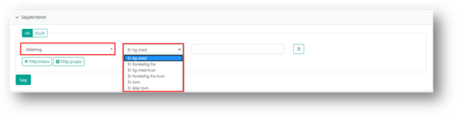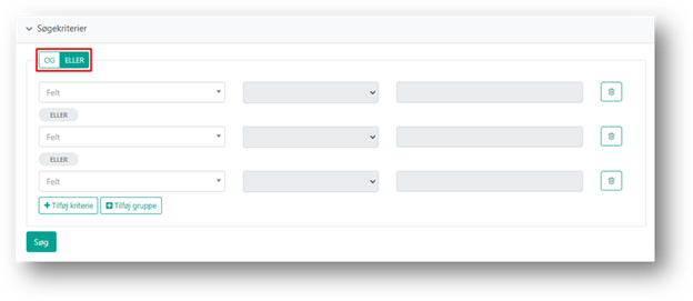 Du tilføjer et søgekriterie ved at klikke på . Herefter vælger du hvilket felt kriteriet