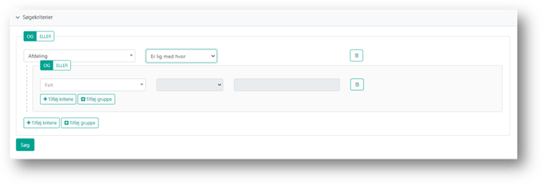 Du tilføjer en gruppe ved at klikke på , herefter tilføjes kriterier til gruppen