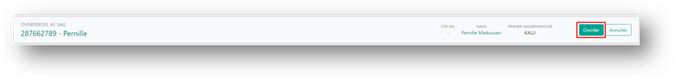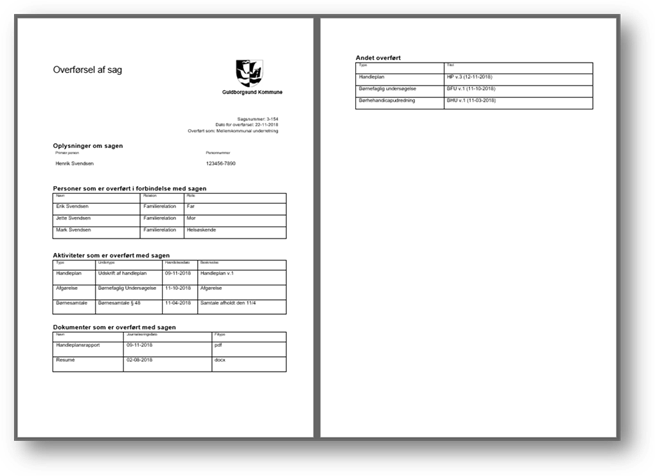 • Sagsnummer, dato for overførsel af sagen samt typen af overførsel