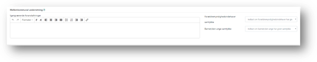 Feltet Igangværende foranstaltninger bliver automatisk udfyldt af systemet, hvis der er ydelser på sagen fra indeværende år. Feltet indeholder oplysninger om Ydelsestype, Tilbud og Lovhjemmel. Du kan redigere og tilføje tekst i indtastningsfeltet.