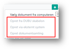 For at oprette dokumenter fra en DUBU skabelon, eller et eksternt system, skal aktiviteten først gemmes, via knappen Gem.