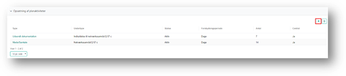 Du tilføjer en planaktivitet ved at klikke på under fanen opsætning af