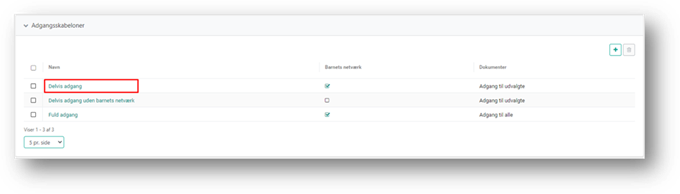 For at redigere en adgangsskabelon, skal du først åbne siden, for den pågældende adgangsskabelon. Dette gøres ved at klikke på navnet på en adgangsskabelon, fra oversigten over adgangsskabeloner.