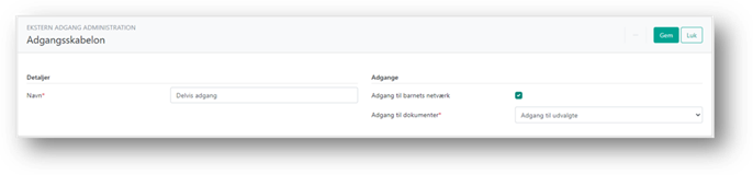 Bemærk, hvis du ændrer i adgangsskabelon, vil dette kun have indflydelse på nye oprettelser af adgange for denne datamodtager på sager. Eksisterende adgange på sager påvirkes ikke, og skal ændres på den enkelte sag.