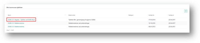 Under området Min kommunes tjeklister kan du komme ind på den enkelte tjekliste ved at trykke på linket i kolonnen Navn.