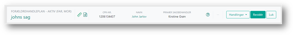 Når du klikker på Revider, dannes en ny version af forældrehandleplanen, mens den foregående forældrehandleplan skifter status til Revideret. Hvis du gerne vil have dette til at fremgå i aktiviteten ’Tilbud om’, skal du gøre det før, du udfører aktiviteten.