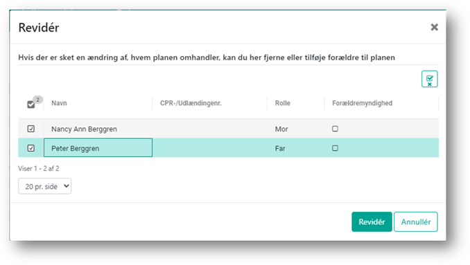 Hvis der sker en ændring til, hvem planen omhandler kan du tilføje eller fjerne en forældre til planen.