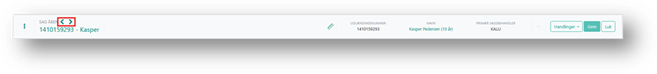 I sagsmenuen står navnet, efterfulgt af alder angivet i parentes, på sagens primære person. Navnet er et link til flere oplysninger omkring personen.