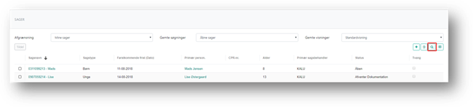 Brugervejledningen vil tage udgangspunkt i oversigten vist på siden ”Sager”, men vil også være gældende for de resterende oversigter i systemet.