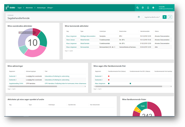 I DUBU er der to standardforsider: Sagsbehandlerforside og Administrativ forside. Forsiderne vil være tilgængelige på tværs af alle kommuner. Det er ikke muligt at ændre forsiderne.