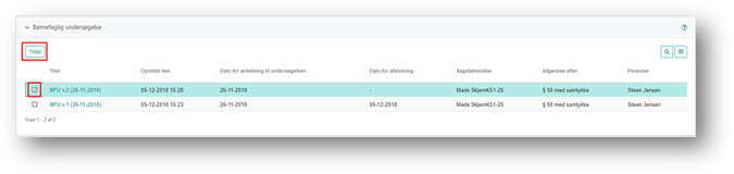 Hvis sagsbehandlere ikke allerede er tildelt sagen som sekundær sagsbehandler, kan du tildele sagen til sagsbehandleren samtidig. Når undersøgelsen er tildelt, kan du i kolonnen ’Sagsbehandler’ se, hvem rådgiveren er.