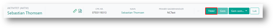 Hvis en anden sagsbehandler er ansvarlig for en aktivitet, kan du tildele aktiviteten til denne sagsbehandler. Det kan være en kollega der skal holde et møde, men det kan også være en kontrakt, som en økonomimedarbejder er ansvarlig for at tjekke igennem. Du kan tildele aktiviteter fra ’Aktivitetsoversigten’, hvor du kan tildele aktiviteter på tværs af sager, fra fanen Aktiviteter på sagen eller fra selve aktiviteten.