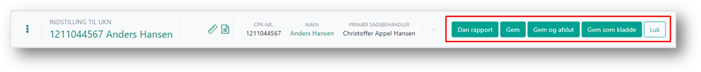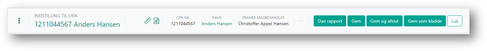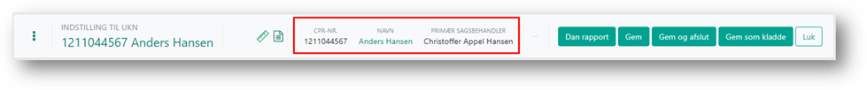 I den næste del af topmenuen finder du oplysninger om sagens primær person, samt indstillingens sagsbehandler.