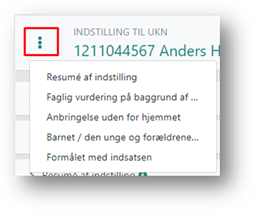 Klikker du på sagsnavnet, åbnes sagen på en ny fane. På den måde kan du se oplysninger fra sagen i én fane og arbejde i Indstillingen til UKN på samme tid.