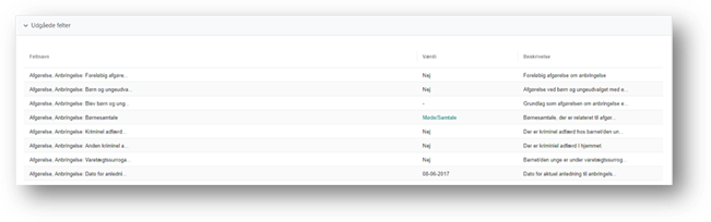 Udgåede felter er den nederste fane, og vises kun hvis der er udgåede felter som er udfyldt.
