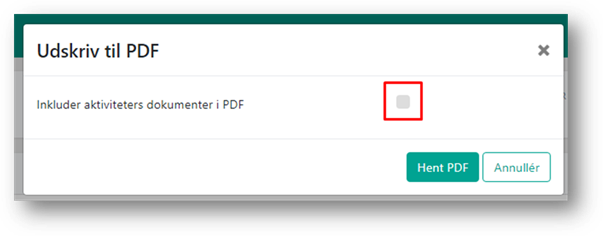 valgte aktiviteter skal inkluderes i den PDF, der bliver dannet. Det gør du ved