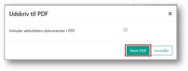 Klikker du på knappen ”Hent PDF”, laver systemet en PDF med de valgte aktiviteter, som sendes til din browser, hvorfra du kan vælge at udskrive den.